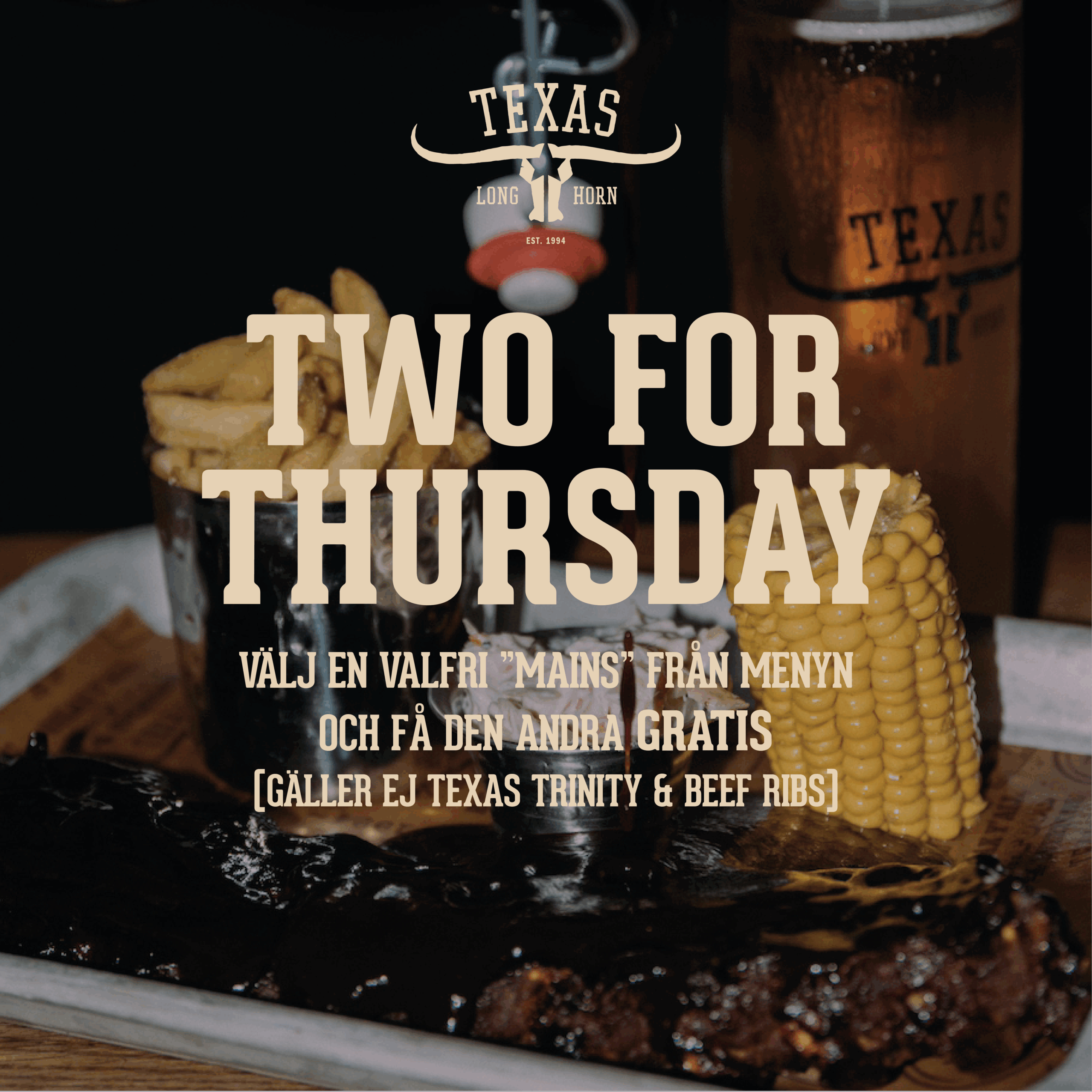 Välj en valfri "Mains" från menyn och få den andra gratis (gäller ej Texas Trinity eller Beef Ribs)