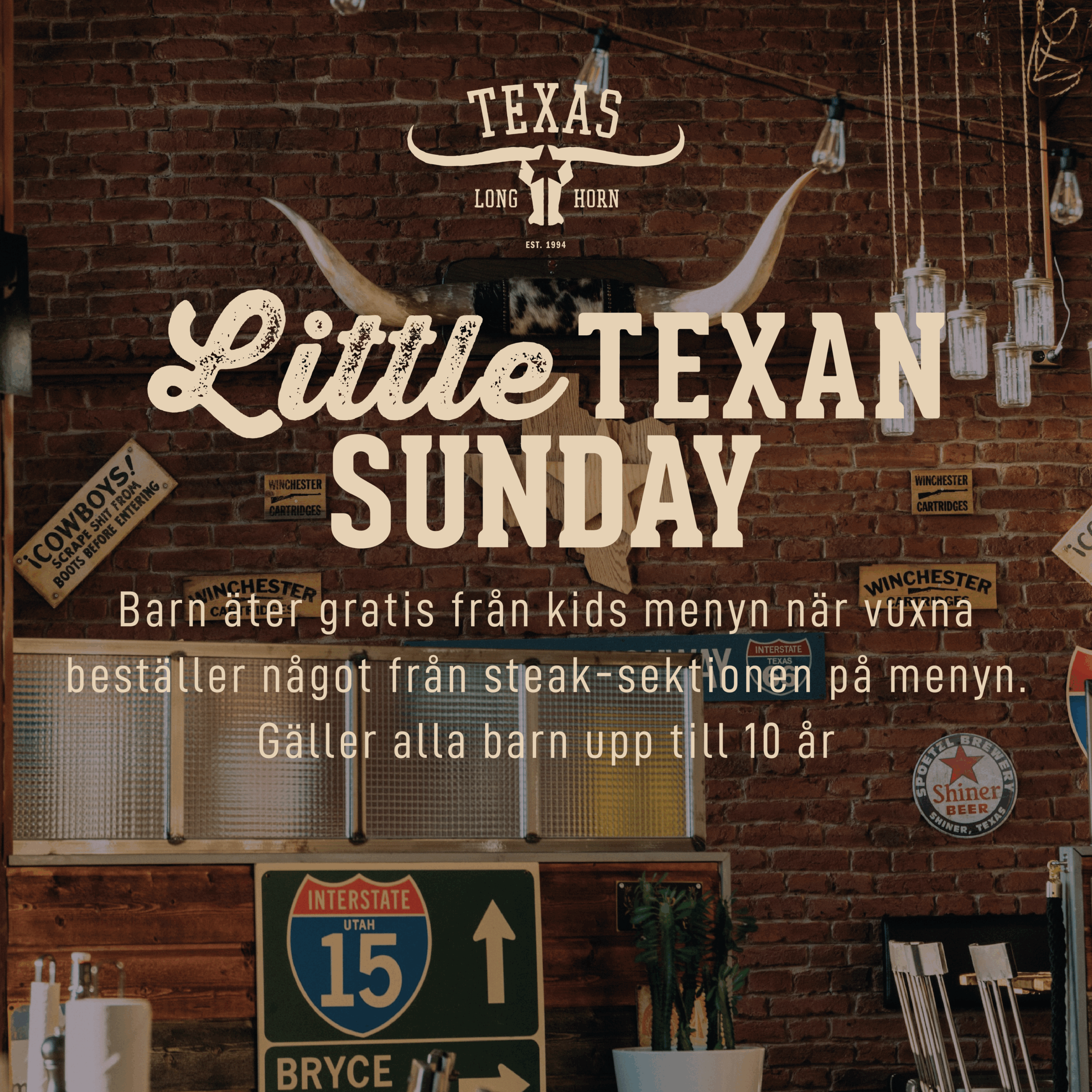 Perfekt för stora och små! Barn äter gratis från burger, chicken och pancakes från kidsmenyn när vuxna beställer från steak-menyn. Varje söndag, hela dagen.