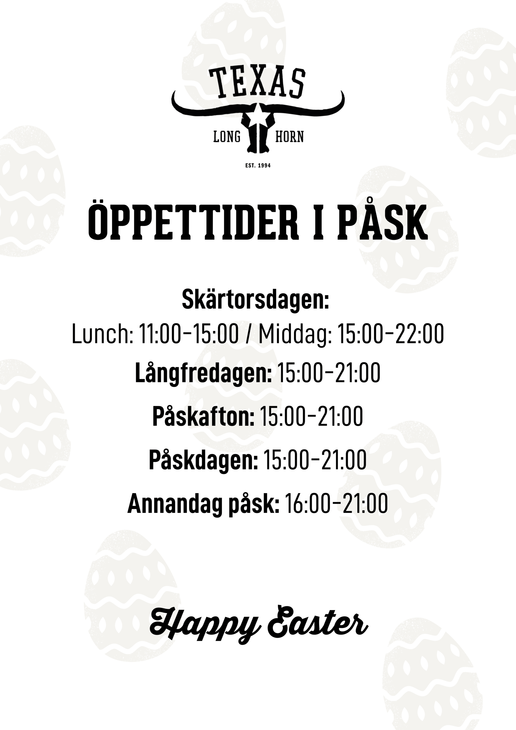 Öppettider Texas Longhorn S:t Paulsgatan