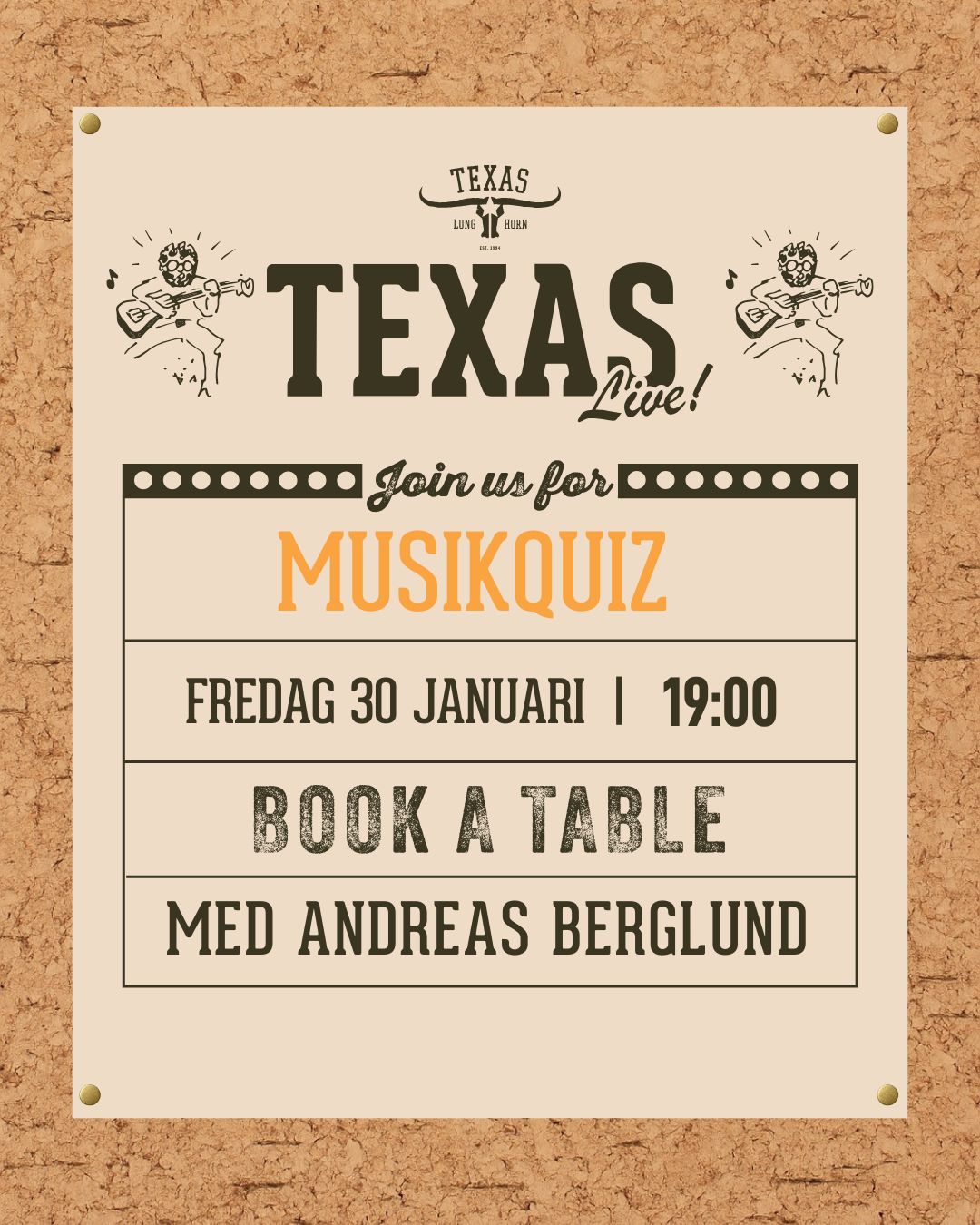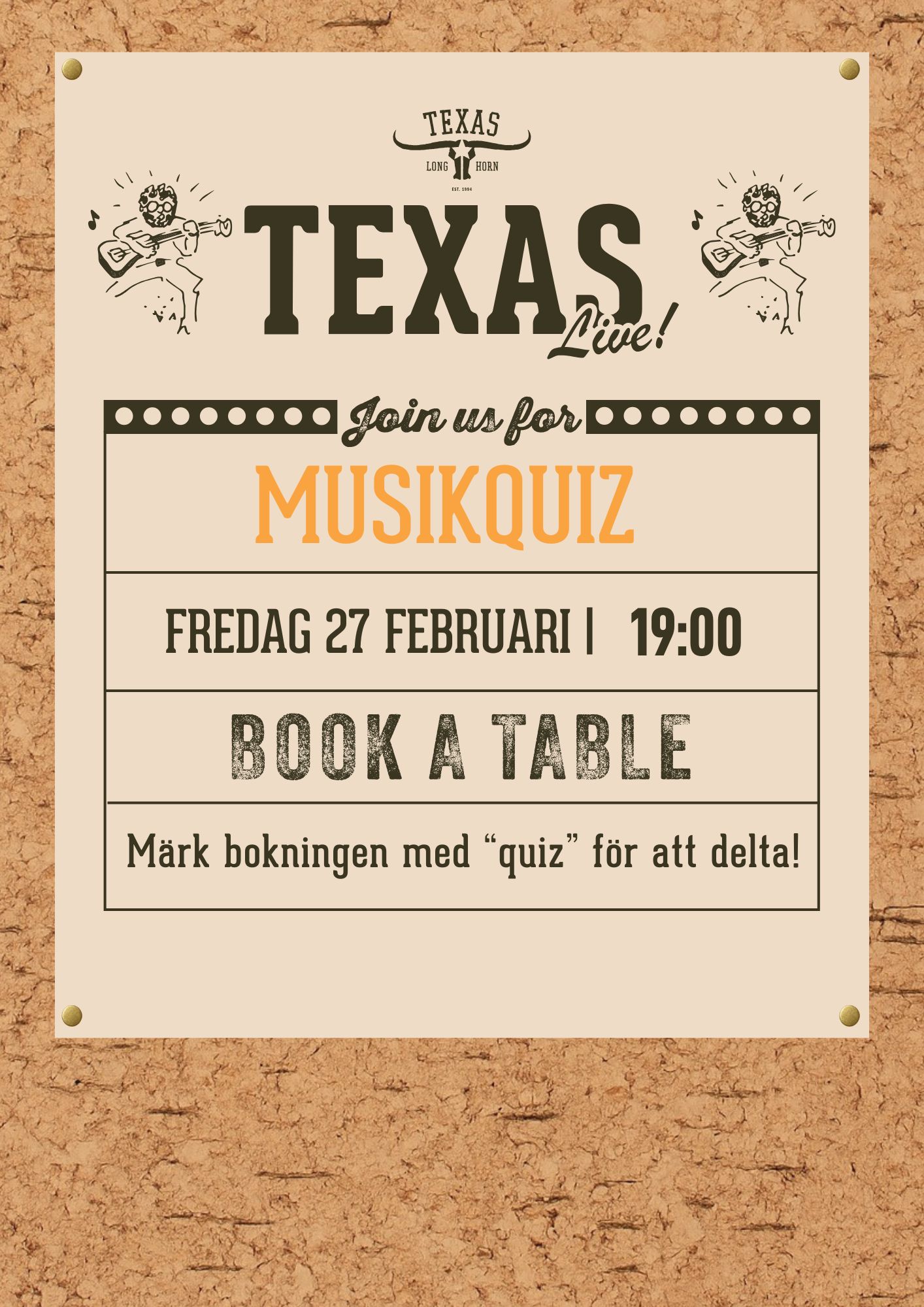 Välkommen till Texas Longhorn Telefonplan. Här njuter du av grillad steakhouse-mat, äkta Texas barbecue, sport på storbild, livemusik, quizkvällar samt lunch, middag, takeaway och catering. Perfekt för både familjemiddagar och företagsevent i en varm och avslappnad atmosfär.