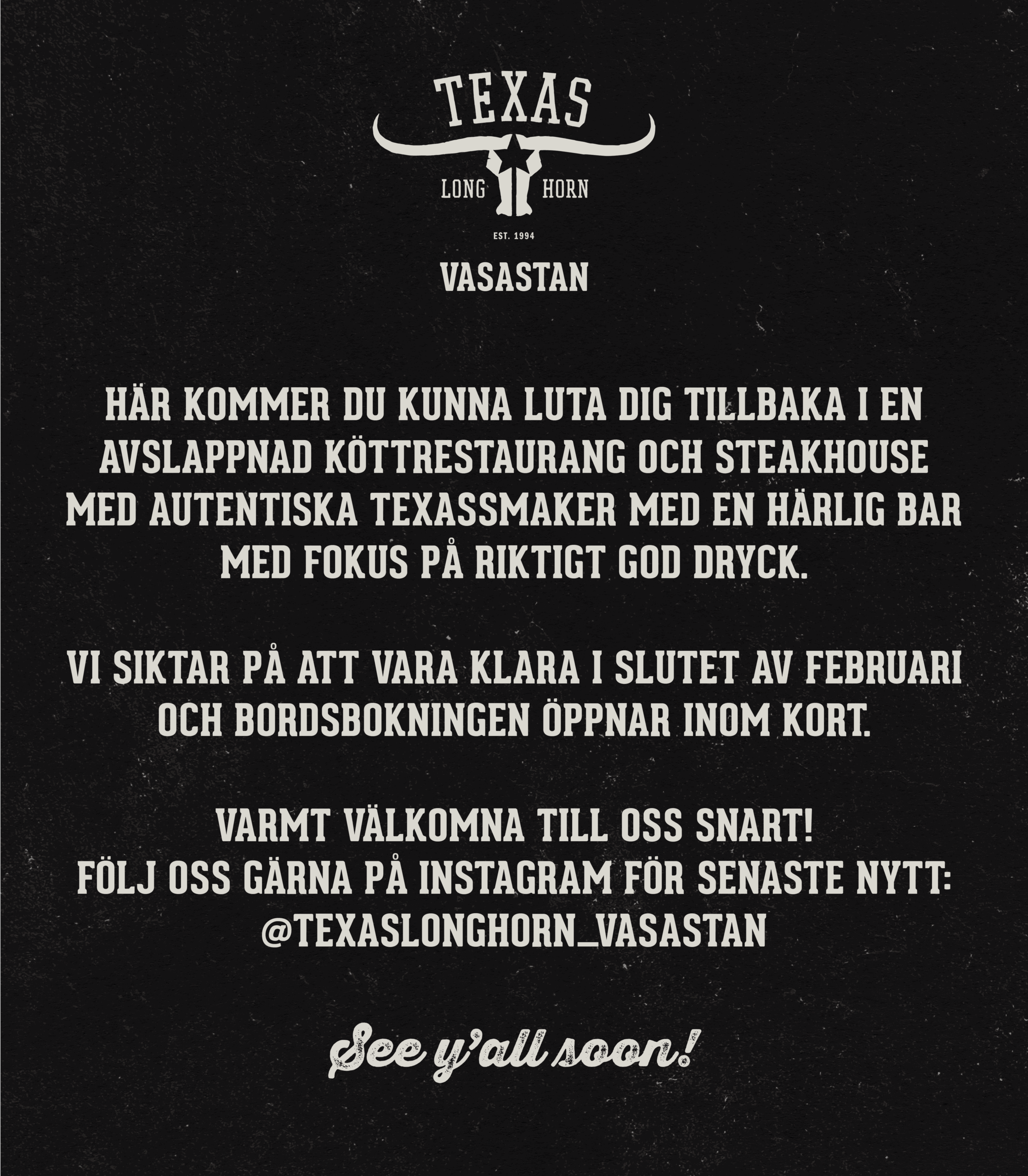 Välkommen till Texas Longhorn i Vasastan – en plats där stora smaker, generös gästfrihet och skön stämning gör varje kväll lite bättre. Hos oss möts du av doften av nygrillade favoriter, rustik charm och ett team som verkligen bryr sig.